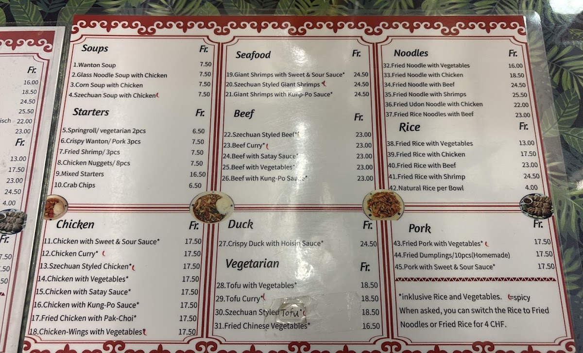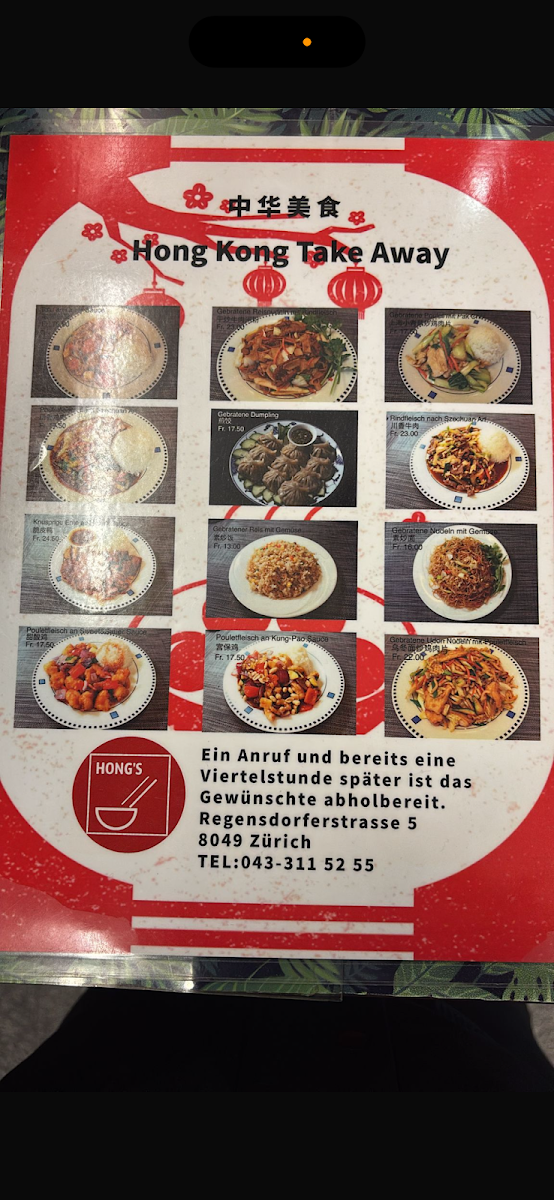 Hong Kong Take Away Menu